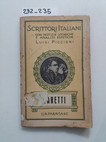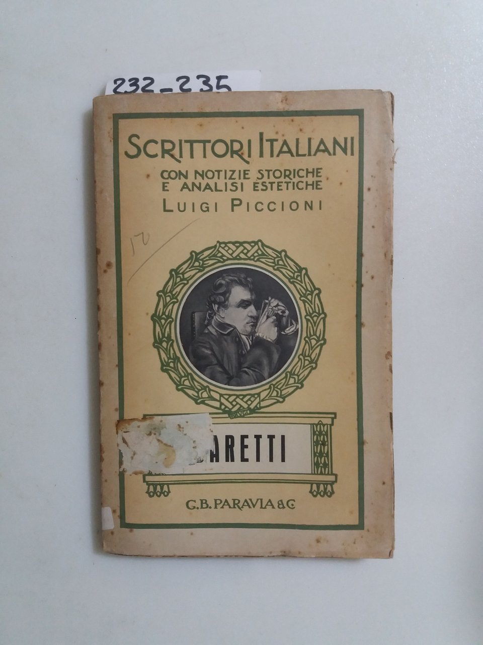 (Collana : Scrittori italiani) - DETTAGLIO DELLE CONDIZIONI : Libro intonso con pagine ingiallite e con numerose fioriture, coperta gravemente danneggiata - (1.XXIV.5).