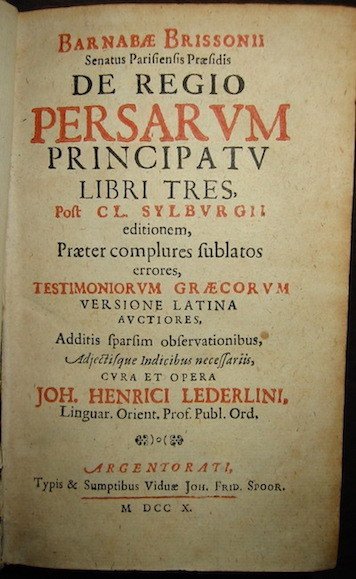 Barnabae Brissonii De Regio Persarum Principatu Libri tres.
