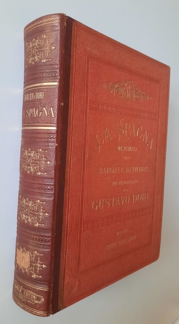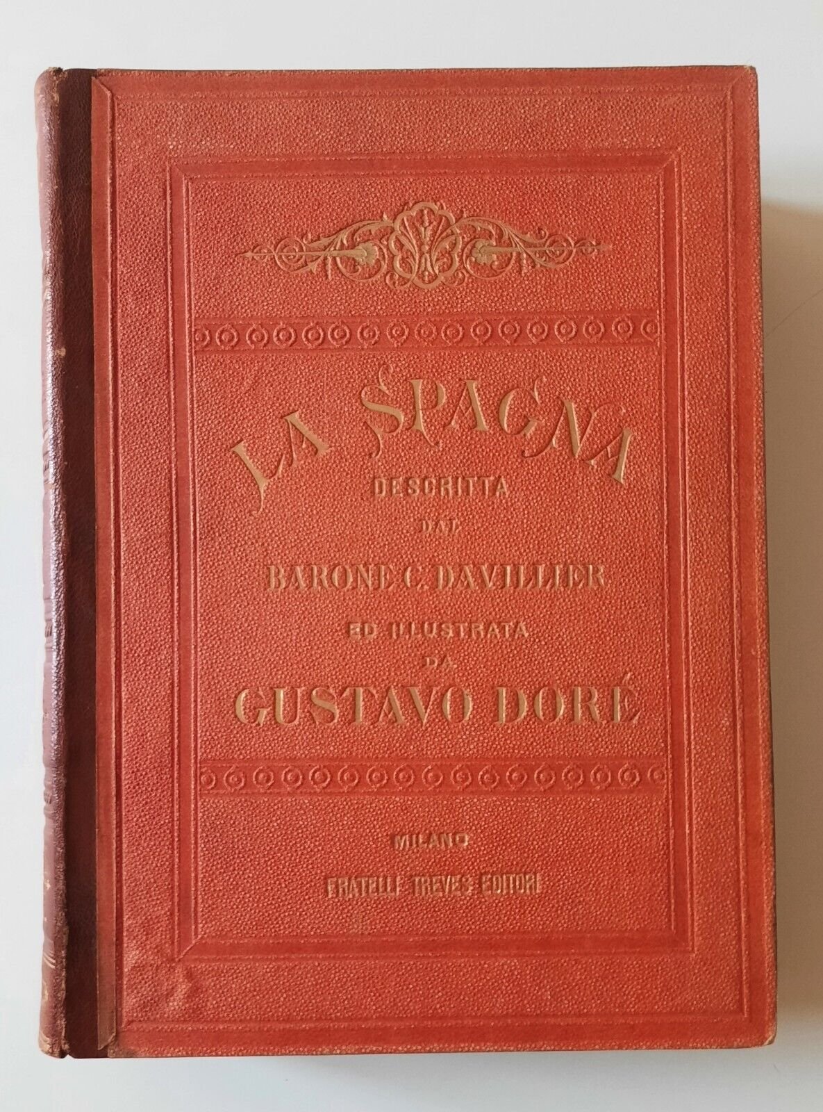 BARONE C. DAVILLIER LA SPAGNA ILL. GUSTAVO DORE' F. TREVES 1874In 4°, legatura in mezza pelle con titoli in oro al dorso e ai piatti, tavole in b/n, taglio dorato.Lievissimi segni al dorso e agli angoli dei piatti, tenui macchie alla prima pagina bianca. Fresche e pulite le altre.