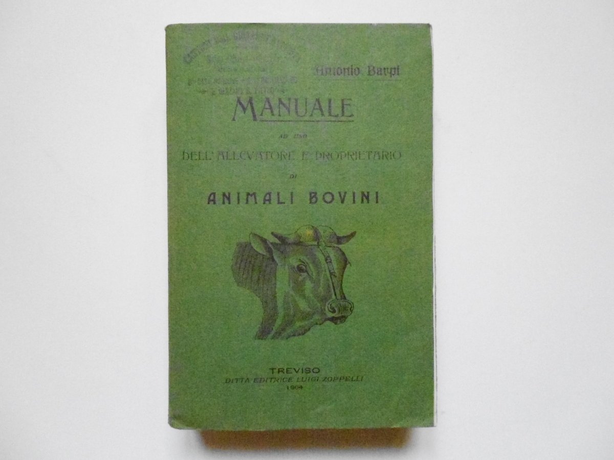 A. Barpi, Manuale Ad Uso dell'Allevatore E Proprietario di Animali Bovini Ditta Editrice Luigi Zoppelli, Treviso, 1904. Cm 23x15, pp. 698; 141 ill. n. t. in b. n. Cartoncino edit. fig. verde. Condizioni di conservazione Esemplare in ottimo stato di conservazione. Quasi allo stato di nuovo. Un timbro dello studio di un medico alle prime pagg. e al fronte della coperta. SETT78.L20953G