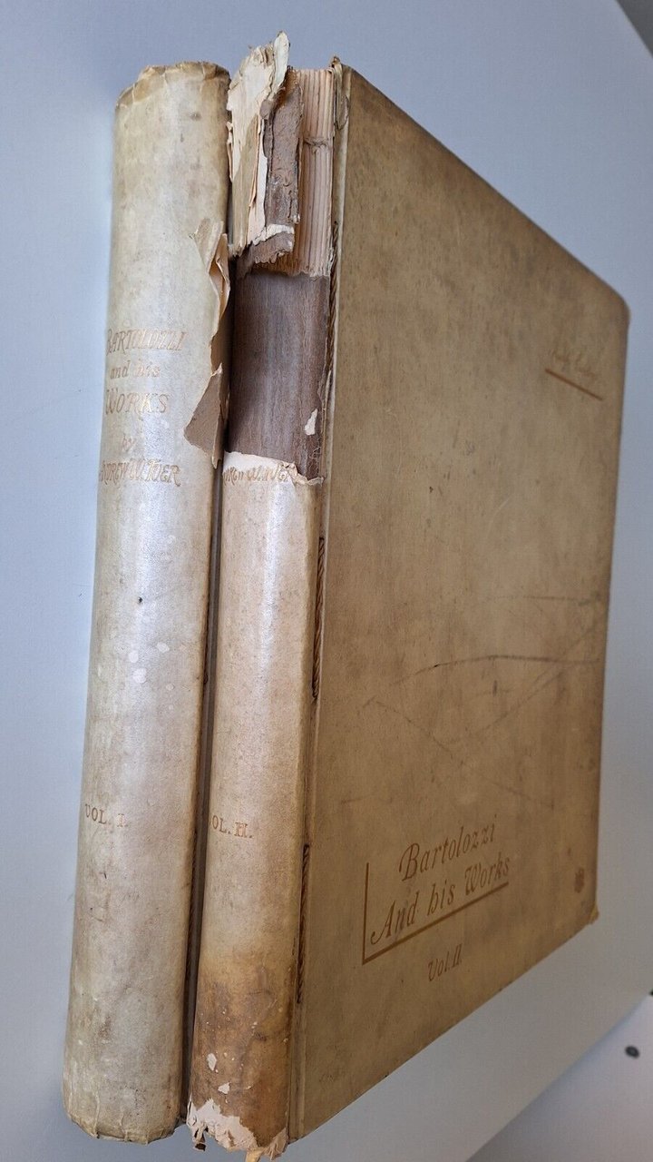 BARTOLOZZI AND HIS WORKS BY ANDREW W. TUER LONDON FIELD & TUERCm. 31 x 36, 2 volumi, legatura editoriale, copertina cartonata con fregio e titolo in oro al piatto e al dorso. tavola a colori.Segni alla copertina del primo volume , strappo al dorso al secondo volume, pagine fresche e pulite.