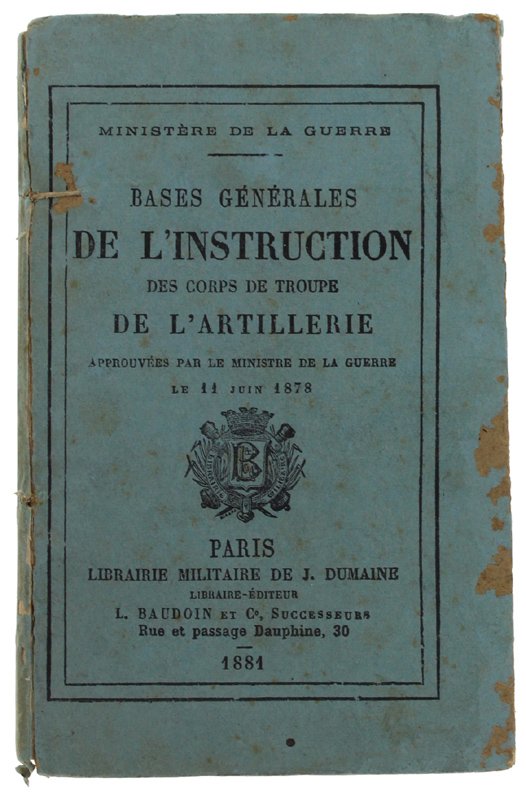 BASES GENERALES DE L'INSTRUCTION DES CORPS DE TROUPE DE L'ARTILLERIE. Approuvées par le Ministère de la guerre Le 11 juin 1878.