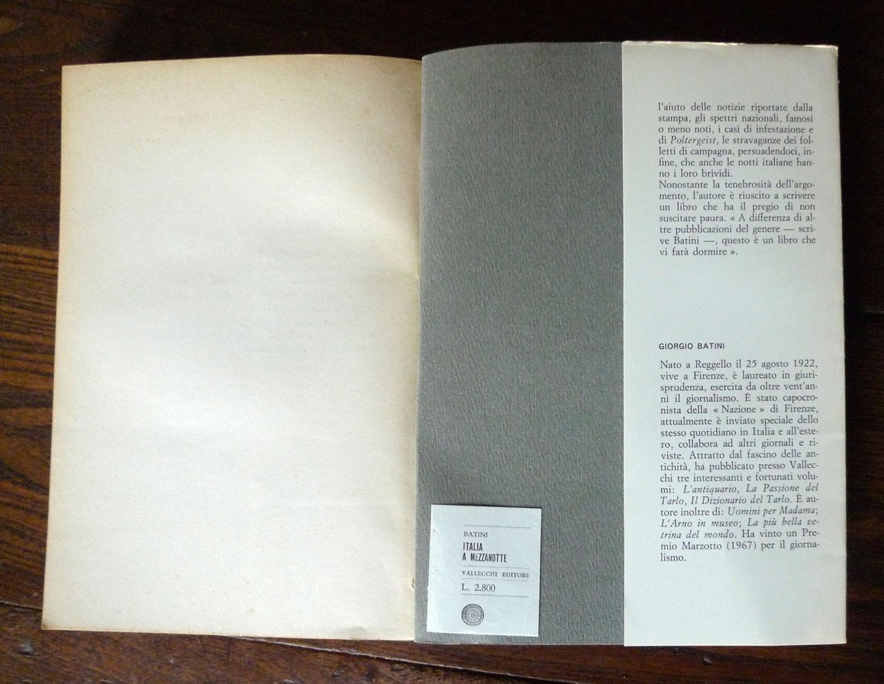 Giorgio Batini,ITALIA A MEZZANOTTE.Storie di fantasmi, castelli e tesori.Vallecchi Editore, Firenze 1968,brossura con sovraccoperta, 22,5x15 cm., pp.290,con 51 illustrazioni in bianco e nerosu tavole in carta patinata fuori testo,peso: g.500cod.9970CONDIZIONI DEL LIBRO: molto buone,pagine ingiallite