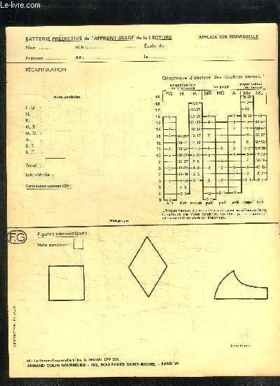 BATTERIE PREDICTIVE DE L'APPRENTISSAGE DE LA LECTURE - APPLICATION INDIVIDUELLE