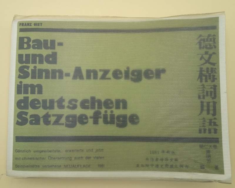 In 8', oblungo, br. ed. con sovrac. plastificata, pp. 529, lievi segni d'uso alla sovrac., piccolo strappo al margine inf. in antiporta, interno in buono stato, segni del tempo. " Eine in gedanklicher Reihenfolge angeordnete Sammlung von konjunktionalen, prapositionalen und adverbialen Ausdrucken mit zahlreichen Beispielsatzen; zusammengestellt von Franz Giet, Ganzlich umgearbeitete, erweitete und jetzt mit chinesischer Ubersatzung auch del vielen Beispielsatze versehene Neuauflage 1981" ***Due to bureaucratic reasons, books dated over 70 years old cannot be immediately exported, please contact us before placing the order.***