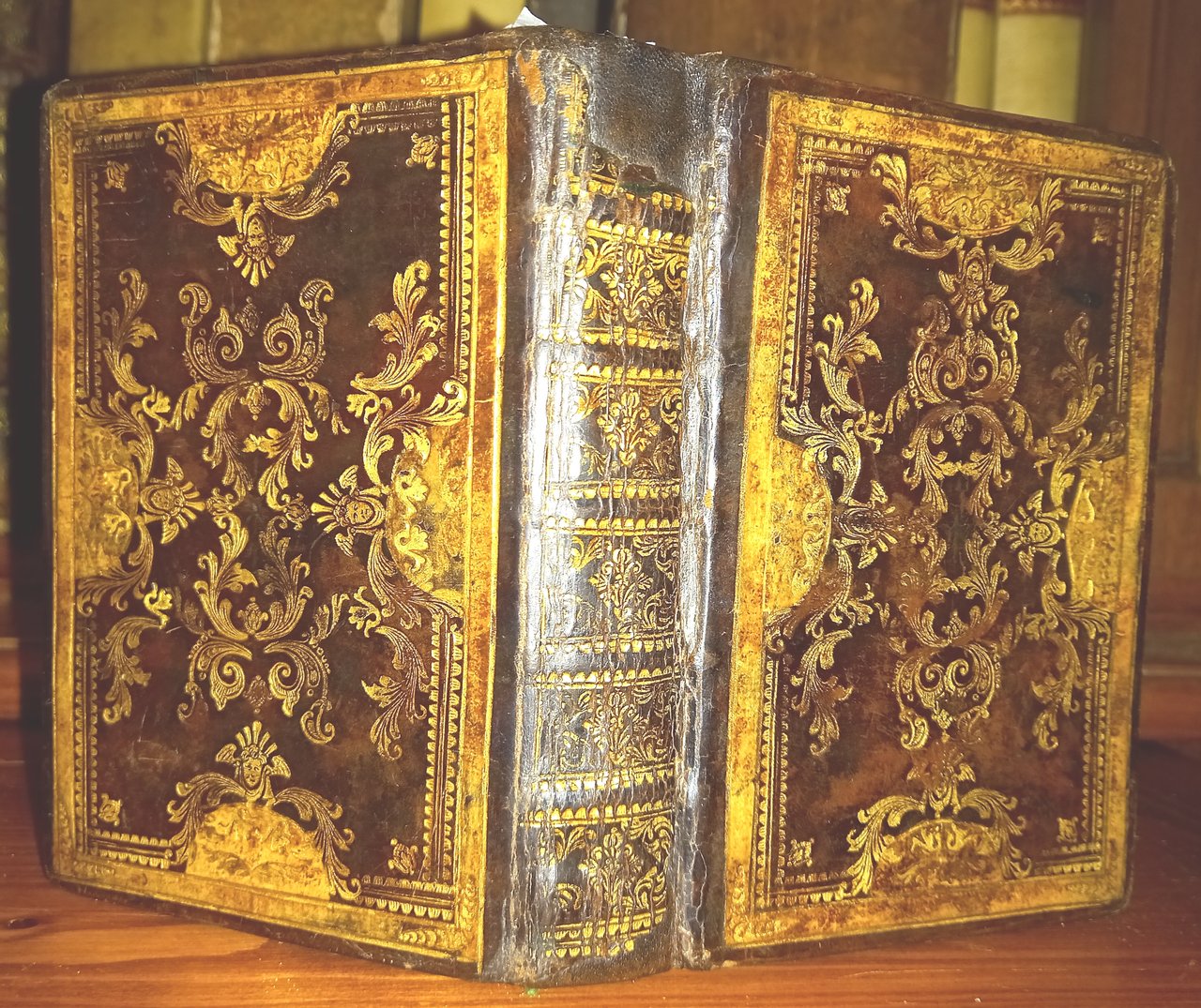 In-16 (13 cm) (38)427 (5). Bella legatura in piena pelle con fregi in oro, contropiatti in carta azzura setificata. Restauro alla parte superiore del dorso. Vignetta sul frontespizio, 14 (su 15) illustrazioni nel testo a piena pagina e 20 finalini incisi da Marco Alvise Pitteri su disegni di Giovanni Battista Piazzetta; testo inciso da Angela Baroni. Mostra degli incisori veneti del Settecento. Catalogo a cura di Rodolfo Pallucchini, Venezia 1941, p. 101 n. 481-488; G. Morazzoni, Il libro illustrato veneziano del Settecento, Arnoldo Forni Editore, 2010, p. 115-116. Manca la seconda incisione. In-16 (13 cm) (38) 427 (5). Beautiful full leather binding with gold friezes, counterplates in silky blue paper. Restoration of the upper part of the back. Vignette on the title page, 14 (out of 15) full-page illustrations in the text and 20 end caps engraved by Marco Alvise Pitteri based on drawings by Giovanni Battista Piazzetta; text engraved by Angela Baroni. The antiporta is missing. Exhibition of the Venetian engravers of the eighteenth century. Catalog edited by Rodolfo Pallucchini, Venice 1941, p. 101 n. 481-488; G. Morazzoni, The Venetian illustrated book of the eighteenth century, Arnoldo Forni Editore, 2010, p. 115-116. The second incision is missing.