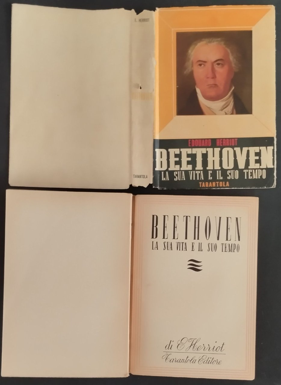 BEETHOVEN LA SUA VITA E IL SUO TEMPO di Eduardo Herriot. Tarantola Editore, 1947 . 324 pagine, diverse fotografie in bianco e nero fuori testo. Copertina editoriale in brossura con sovraccoperta. Stato di conservazione: molto buono (pagine normalmente ingiallite, sovraccoperta sciupata) Libro usato saggistica