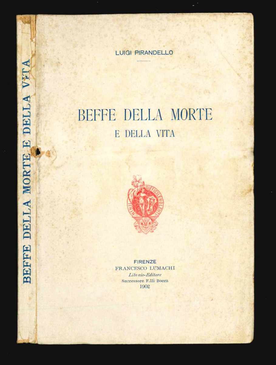 LIBROPrima edizione.Ottimo esemplare intonso (piccole mancanze e sbucciature non deturpanti al dorso, fioriture ai piatti).Nonostante la raffinatezza delle edizioni dell'editore-libraio fiorentino Lumachi, Pirandello si lamentò della scarsa distribuzione del volume.Bibl.: Lo Vecchio Musti, Bibliografia di Pirandello (Milano 1937), p. 33