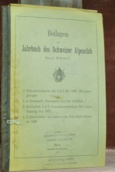 Beilagen zum Jahrbuch des Schweizer Alpenclubs. Band XXXIV. Felht Beilage Nr. 2. 1: Exkursionskarte des S. A. C. für 1899. Ofenpassgruppe. 2: A. Bosshard. Panorama von der Sulzfluh. 3: Bibliothek S. A. C. Zuwachsverzeichniss Nr. 1 zum Katalog von 1897. 4: E. Courvoisier. Les cabanes du Club Alpin Suisse en 1899.