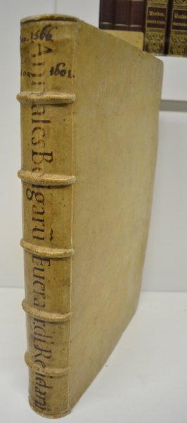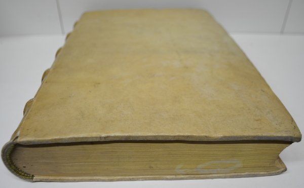 • piena pergamena coeva, dorso a 5 nervi con titolo manoscritto , tagli gialli