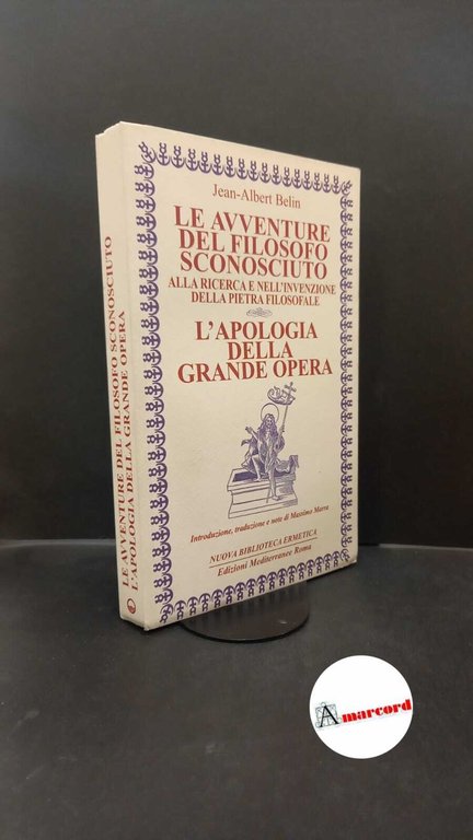 1111 Belin, Jean-Albert Belin, Jean-Albert. , and Marra, Massimo. �Le �avventure del filosofo sconosciuto alla ricerca e nell'Invenzione della pietra filosofale Roma Edizioni mediterranee, 2016. , Edizioni mediterranee 2016 italiano, in ottavo 277 41930