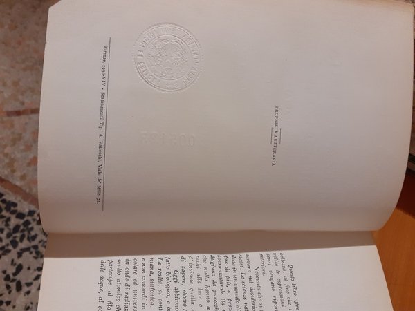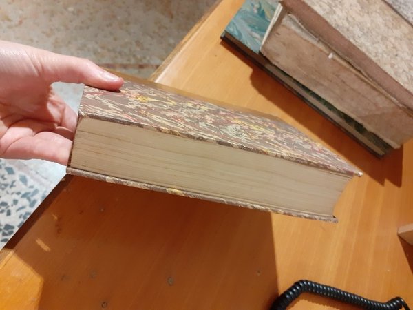 Rilegato in mezzapelle e carta marmorizzata negli anni '60. Su costa scritte e decorazioni in oro zecchino.