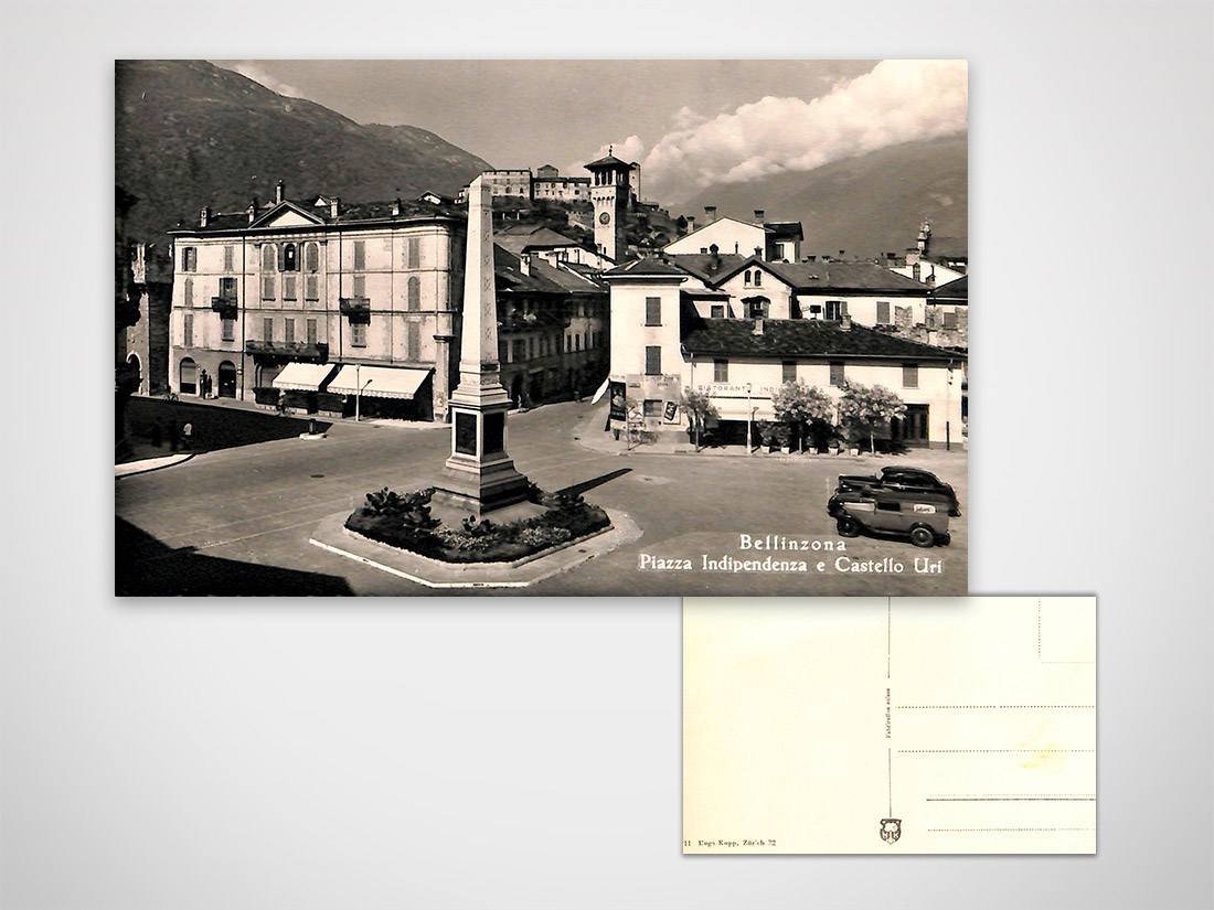 Cartolina Bellinzona Piazza Indipendenza e Castello Uri, non viaggiata  Dimensioni: 9 x 14 cm