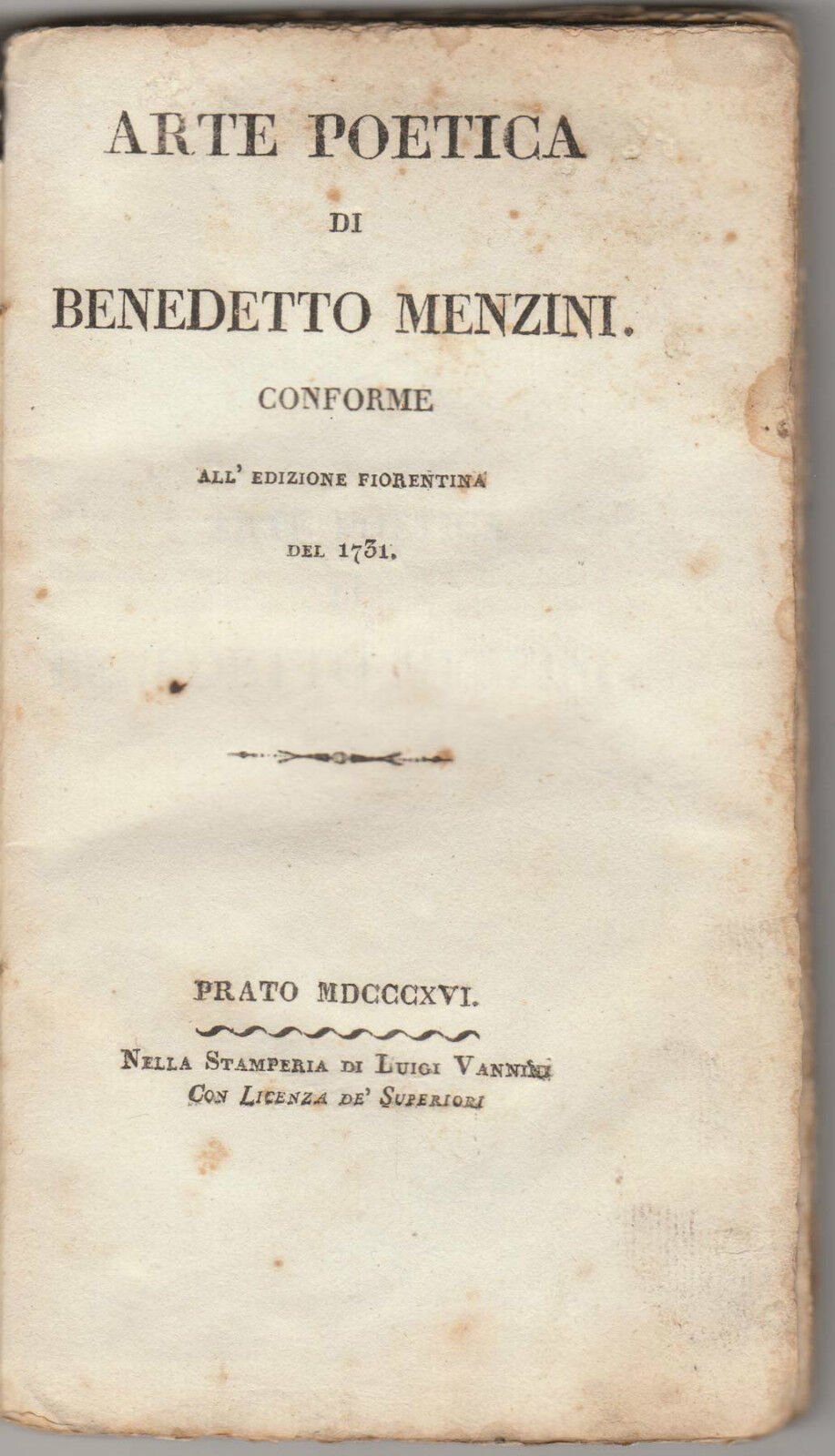 Prato MDCCCXVI (1816), nella Stamperia di Luigi Vannini,