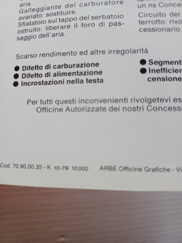 Benelli 50 Export 3V 1979 manuale uso manutenzione libretto istruzioni originale
