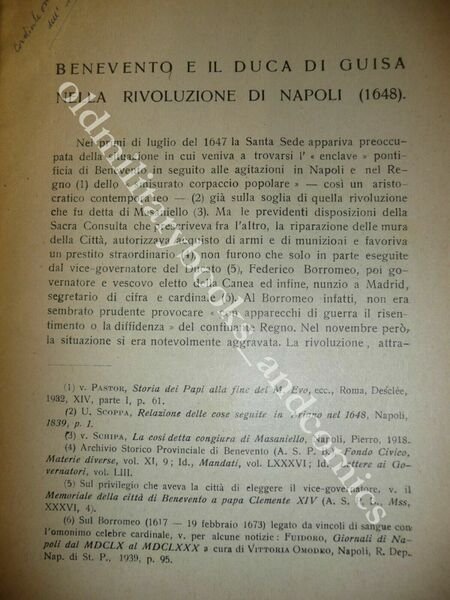 BENEVENTO E IL DUCA DI GUISA NELLA RIVOLUZIONE DI NAPOLI 1648 ALFREDO ZAZO