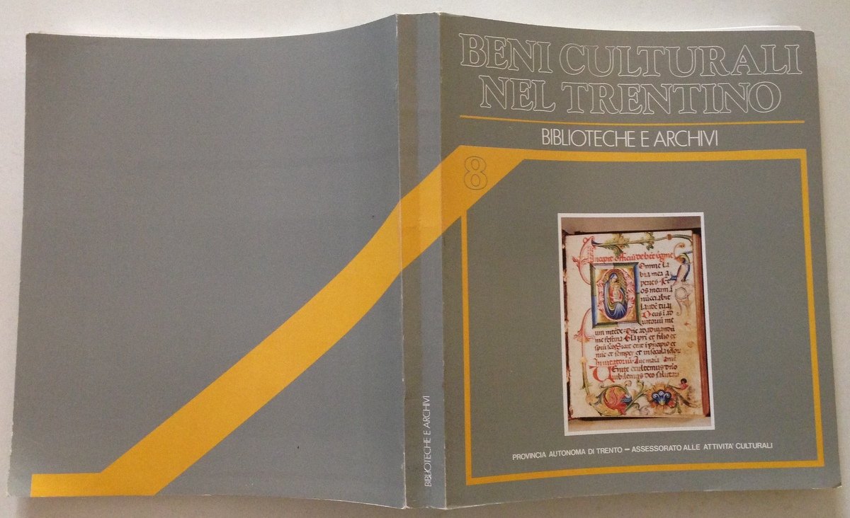 AA. VV., Beni culturali nel Trentino Biblioteche e archivi Provincia Autonoma di Trento, Assessorato alle Politiche Culturali, 1983; cm. 24x21; pp. 390; con ill. in b/n e a colori n.t. e a piena pag.; mostra Trento - Castello del Buonconsiglio, luglio-dicembre 1983; brossura editoriale. Condizioni di conservazione Esemplare in ottimo stato. SETT195.L16694 MT