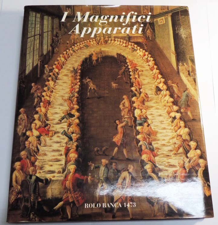 I magnifici apparati, introduzione di Cristina Acidini Luchinat, testi di Jadranka Bentini, Patrizia Curti, Rossella Rinaldi, Anna Stanzani, Rolo Banca 1473, s.l. (ma stampato a Cinisello Balsamo, presso le Arti Grafiche Amilcare Pizzi) 1998, pp. 397, in gran parte ill. col., cm 31, tela ed. con titoli in oro al dorso e al piatto e sovraccoperta. Il volume vuole essere un catalogo e una storia delle arti minori (abiti di gala, gioielli, suppellettili, arredi ecc.) in Italia tra il Medioevo e la fine del Settecento, studiate e ricostruite sia attraverso le testimonianze dirette, sia per mezzo delle attestazioni iconografiche. Sommario. Cristina Acidini Luchinat, Introduzione - Jakandra Bentini, Le arti per le relazioni sociali - Rossella Rinaldi, Medioevo sfarzoso - Anna Stanzani, Il Rinascimento - Patrizia Curti, I secoli delle glorie. Perfetto.
