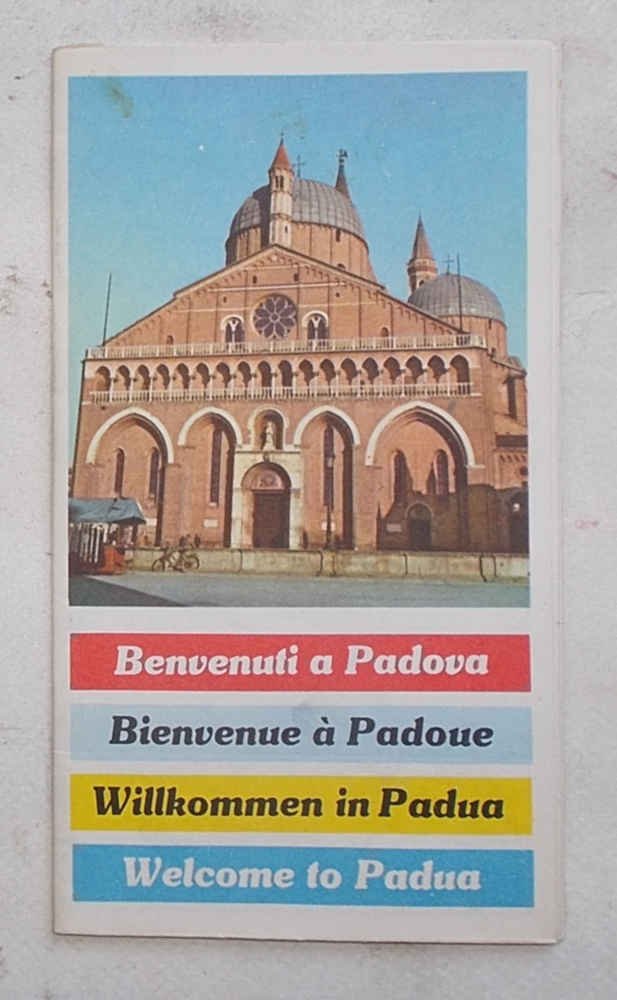 Pieghevole di 20 facciate di cm. 17 x 9,5; con 1 grande pianta di Padova (con indicazione dei distributori di carburante "Aquila"), 2 cartine doppie a colori e numer. illustraz. fotograf. a colori; copertina fotografica a colori. VG. ** Testi in italiano, francese, tedesco e inglese.