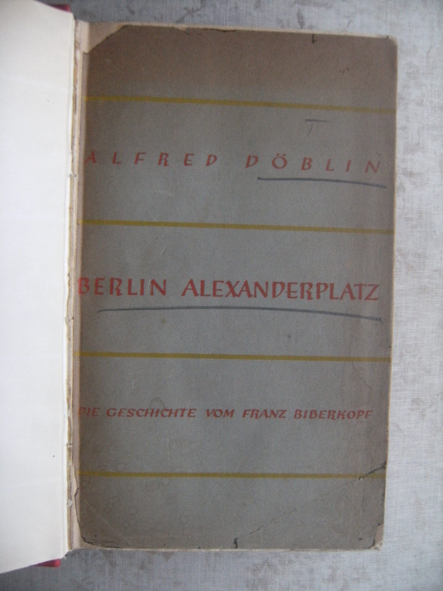 Libro di pag. 528 rilegato in tela editoriale con titoli al dorso, conserva all'interno copertina originale. Seconda edizione del capolavoro di Doblin. Testo in gotico tedesco. Molto buono lo stato di conservazione.