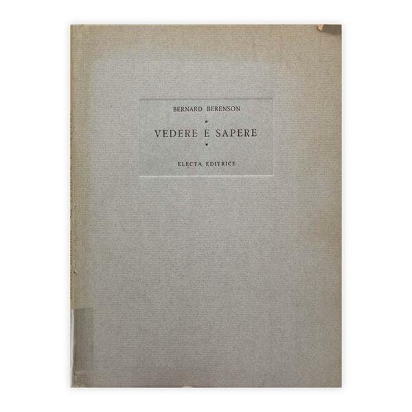 Autore: Bernard Berenson Titolo: Vedere e sapere Edizione: Electa Casa Editrice Milano 1951 Dimensioni: 16 x 21,5 cm c.a. Pagine: 88 Copertina: Cartonato Condizioni: Ottime come da foto