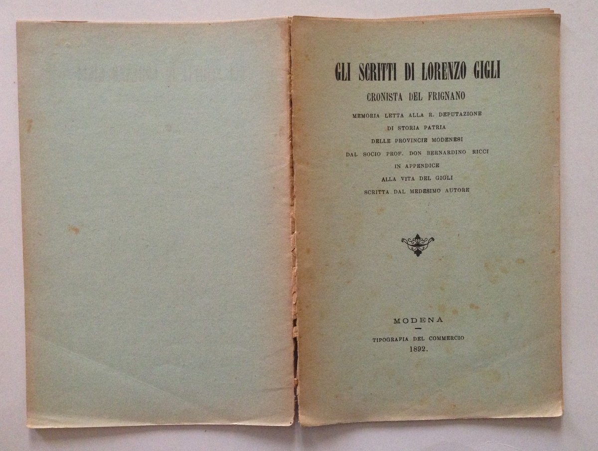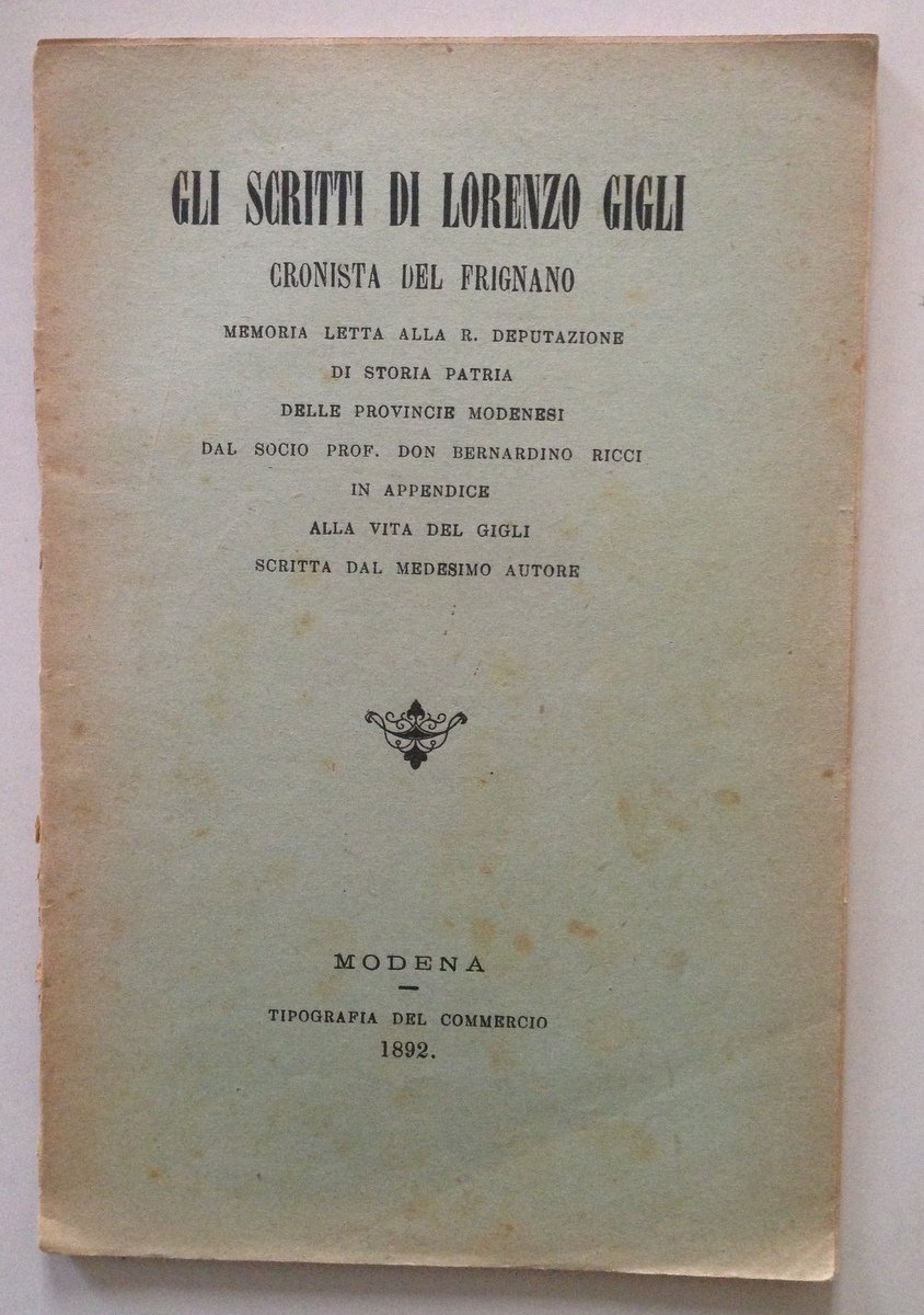 Bernardino Ricci Gli Scritti di Lorenzo Gigli Cronista del Frignano Modena 1892
