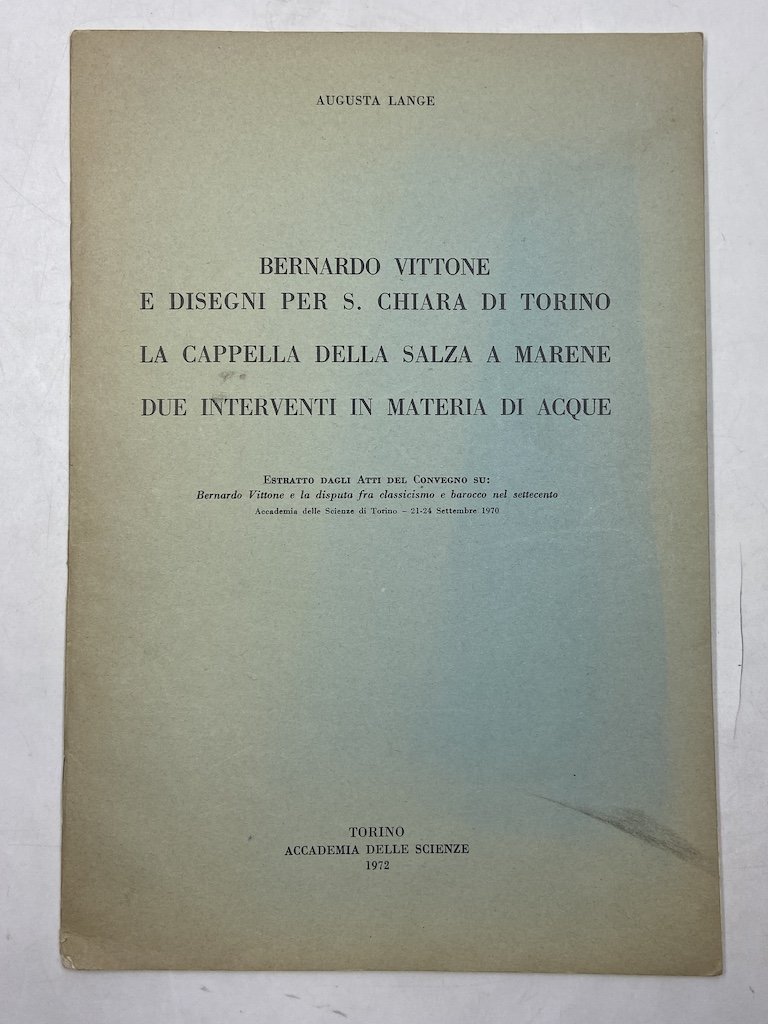 Bernardo Vittone e disegni per S. Chiara di Torino. La Cappella della Salza a Marine. Due interventi in materia di acque. Estratto dagli Atti del Convegno su Bernardo Vittone e la disputa fra classicismo e barocco nel settecento. Accademia delle Scienze di Torino 21-24 settembre 1970.