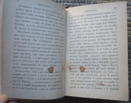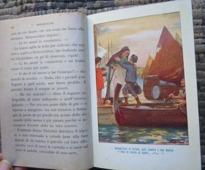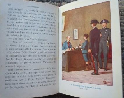 Tipografia Adriano Salani, 1915; tela edit. con disegno a due colori al piatto, in 16°, pp. 361 + (7). Disegni del pittore Corrado Sarri. Una tavola a colori in antiporta e tre fuori testo, disegni b/n nel testo. Legatura salda, ben tenuto. Due macchioline a pag. 52 e 53 che non ledono la lettura.