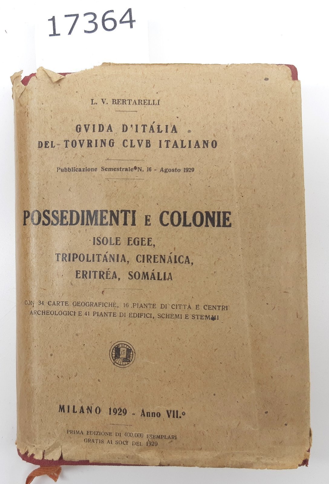 Bertarelli T.C.I Possedimenti e colonie isole Egee Tripolitania Cirenaica Eritrea Somalia 1929