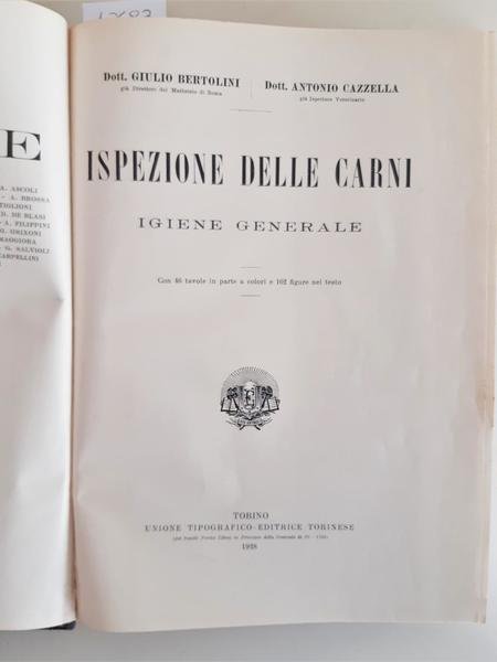 Bertolini Cazzella Ispezione delle carni igiene generale UTET 1938