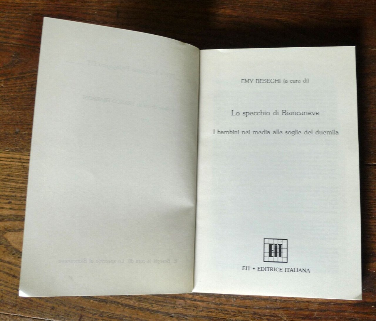 A cura di Emy Beseghi,LO SPECCHIO DI BIANCANEVE.I BAMBINI NEI MEDIA ALLE SOGLIE DEL DUEMILA.EIT Editrice Italiana, Teramo 1990,brossura, 21x14 cm., pp.218,illustrazioni in bianco e nero,PPE PANORAMA PEDAGOGICO EIT,collana diretta da Franco Frabboni,peso: g.300