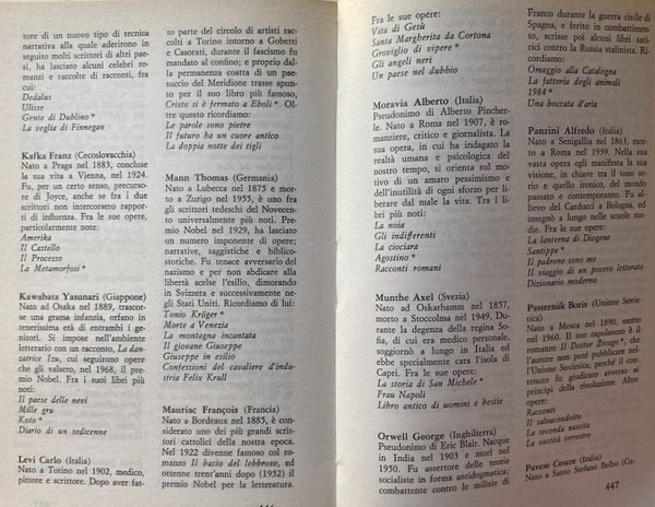 Soggetti: Letteratura mondiale, Grandi autori, Capolavori, Vecchie Antologie letterarie, Raccolte, Scritti, Brani scelti, Critica letteraria, Manuali scolastici antichi, Collezionismo, Testi scolastici, Lettura, Libri per ragazzi, Leggere, Bestsellers, Grandi opere, Intramontabili, Classici, Narrativa, Romanzi, Letteratura italiana, Letteratura americana, Letteratura francese, Letteratura dell'Europa dell'est, Seconda Guerra Mondiale, Fascismo, Nazismo, Novecento, Romanzi distopici, Fantasy, Fantascienza, Saghe familiari, Romanzo storico, Popolare, Umorismo, Gialli, Borghesia, Commedie, Anni Settanta, Scuole medie, Secondaria, Consultazione, Riferimento, Passi scelti, Autori italiani e stranieri, Storici, Biografie, Bibliografia, Premio Nobel, World literature, Great authors, Masterpieces, Old literary anthologies, Collections, Writings, Selected pieces, Literary criticism, Ancient school manuals, Collecting, School texts, Reading, Children's books, Reading, Great works, Timeless, Classics, Fiction, Novels, Italian Literature, American Literature, French Literature, Eastern European Literature, World War II, Twentieth Century, Dystopian Novels, Science Fiction, Family Sagas, Historical Novel, Popular, Humor, Bourgeoisie, Comedies, Seventies, Middle Schools, Secondary, Consultation, Reference, Selected passages, Italian and foreign authors, Historians, Biographies, Bibliography, Nobel Prize, Didattica, Pedagogia, Cultura generale, Didactics, Pedagogy, General culture