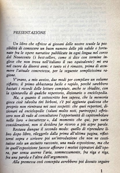 Un libro che offrisse ai giovani delle nostre scuole la possibilità di conoscere un buon numero delle più valide e fortunate fra le opere narrative pubblicate in ogni lingua nel corso del Novecento (i best-sellers, come si dice con termine inglese che non trova nell'italiano il suo equivalente) mi era nel cuore da diversi anni; e tanto vi è rimasto, prima di assumere l'attuale concretezza, per la seguente semplicissima ragione.
