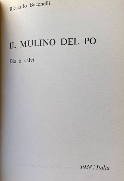 1938/Italia Riccardo Bacchelli: Il mulino del Po (Dio ti salvi) Il braccio di ferro e il supplizio di Fratognone