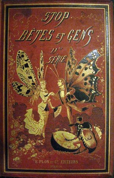 In-8° (249x160mm), pp. (4), 344, bellissima legatura editoriale in t. tela rossa figurata; al centro del piatto anteriore, spiritosa raffigurazione policroma in oro e in nero di un uomo e una donna con ali di farfalla danzanti al ritmo di un tamburo suonato da uno scarabeo entro fregi vegetali oro e triplice bordura di filetti in oro e in nero. Tit. oro al piatto e al dorso; filetti e fregi oro al dorso. Tagli dorati. Perfetto stato. Edizione originale della seconda serie di queste divertenti favole e racconti umoristici in versi interamente illustrate 'à la plume et au crayon' da invenzioni figurative dell'autore stesso (una f.t. all'antiporta). Louis Pierre Gabriel Bernard Morel-Retz, detto 'Stop' (Digione, 1825 - ivi, 1899), allievo di Gleyre, fu pittore di genere, ritrattista e incisore ma deve la sua fama alle caricature, soprattutto a quelle dei 'Salons comiques', dei quali la presente opera è la continuazione. Cfr. Bénézit, VII, 533.
