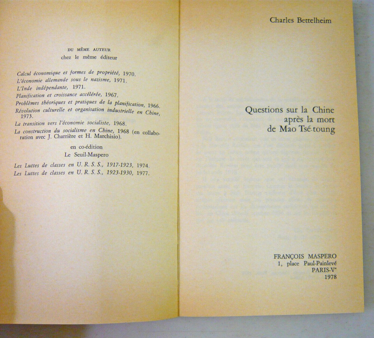 Bettelheim,QUESTIONS SUR LA CHINE APRÈS LA MORT DE MAO TSÉ-TOUNG,'78[STORIA CINA