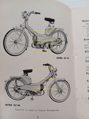 Bianchi 50 Mobylette Intra - Ispra 1962 manuale uso manutenzione originale