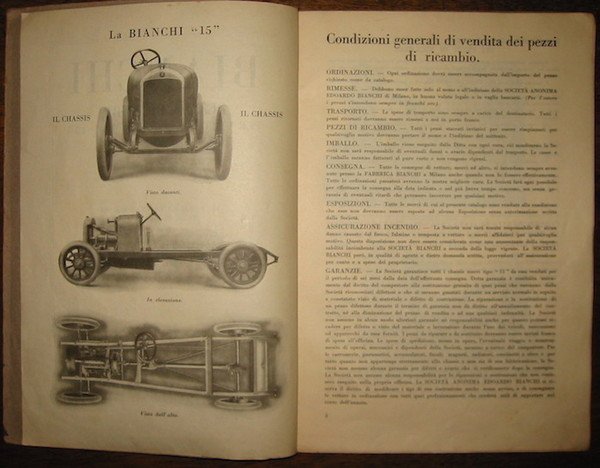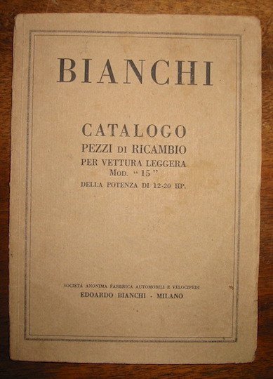 Bianchi. Catalogo pezzi di ricambio per vettura leggera Mod. ‘15’ della potenza di 12-20 HP