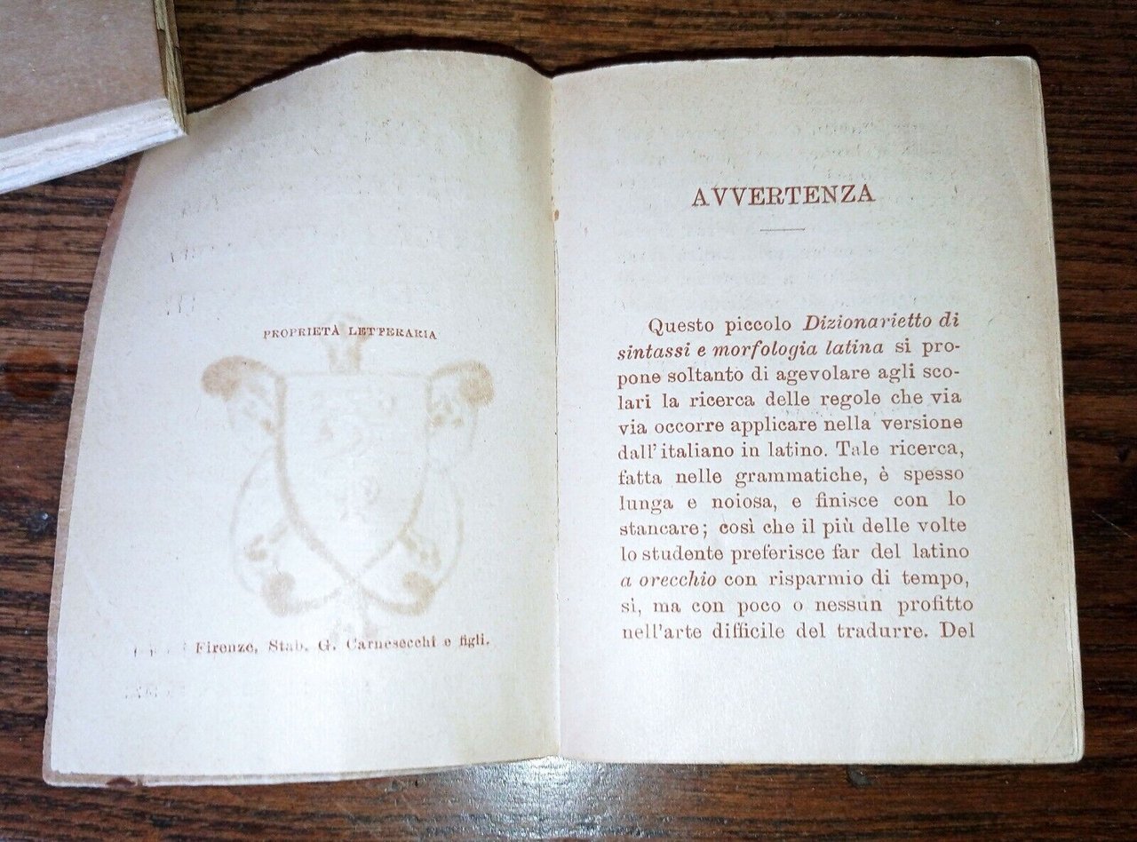 Bianchi,DIZIONARIETTO DI SINTASSI E GRAMMATICA LATINA,1911 Sansoni[minilibro