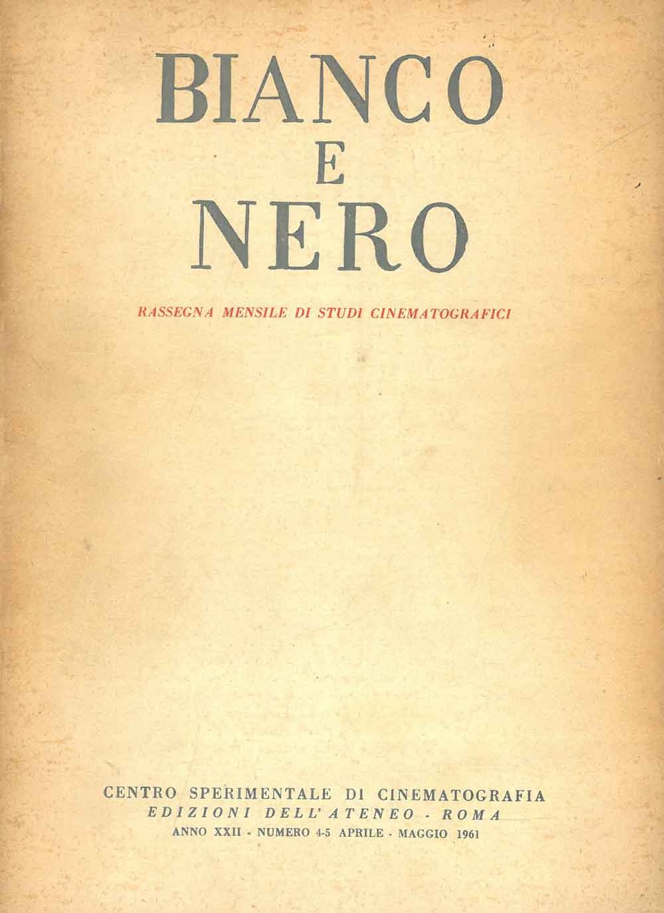 Bianco e nero. Rassegna mensile di studi cinematografici. Anno xxii, numero 4-5, aprile - maggio 1961