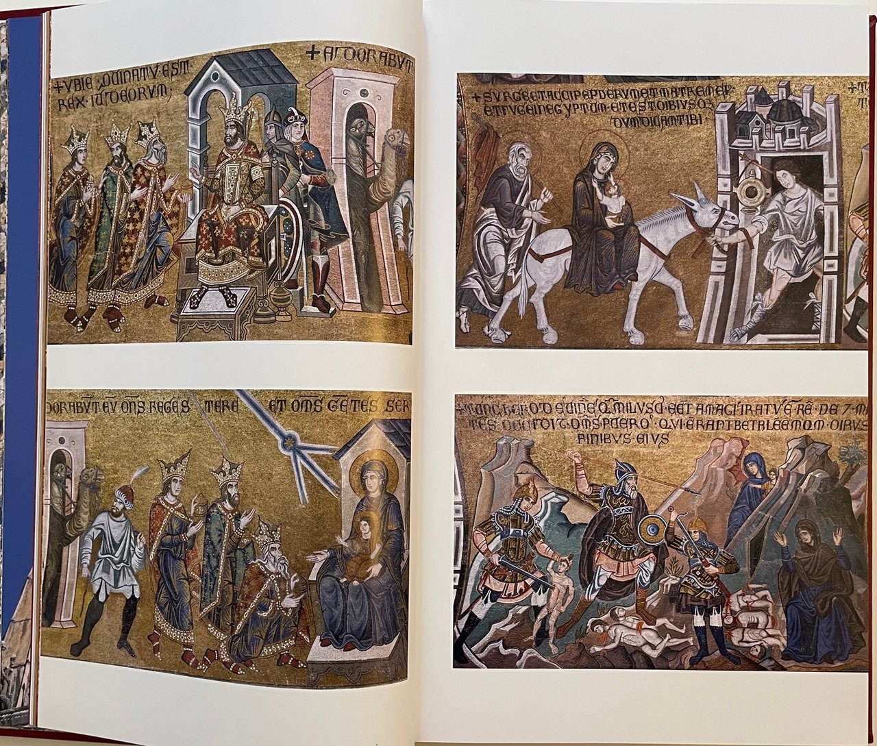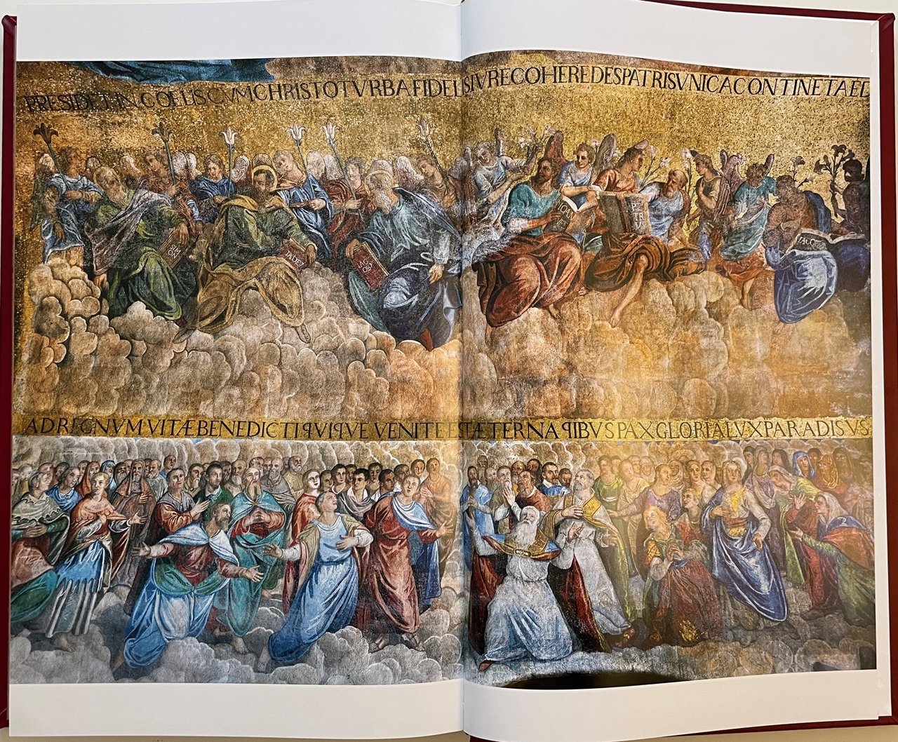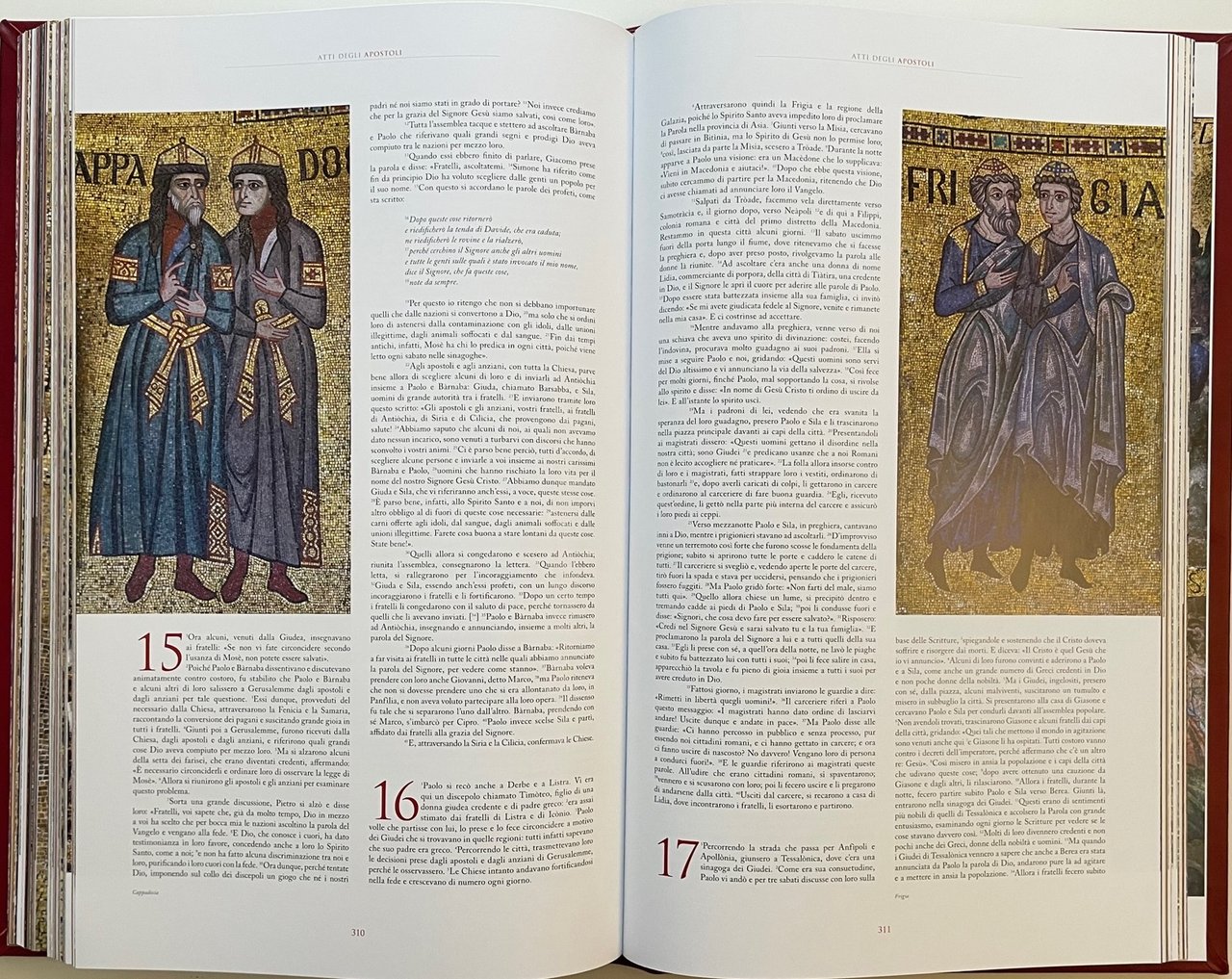 Bibbia di Venezia. Vecchio e Nuovo Testamento (Venice bible). Scripta Maneant, 2013. Ultima traduzione completa della Sacra Bibbia a cura della CEI, con coordinamento di Mons. Giuseppe Betori. Fotografo Sandro Vannini. Opera in due volumi (ormato 29x47 cm.) : Antico Testamento (pagine 600), Nuovo Testamento (pagine 416). All’interno il testo si alterna ai capolavori dei mosaici policromi della straordinaria Basilica veneziana. Legatura in piena pelle di vitello conciata al naturale, dorsi con sei nervi e titoli stampati in oro, piatti con al centro, incassato, mosaico in vertoceramica e oro. I volumi sono custoditi in appositi cofanetti. Tiratura di 1999 esemplari. Condizione ottima.