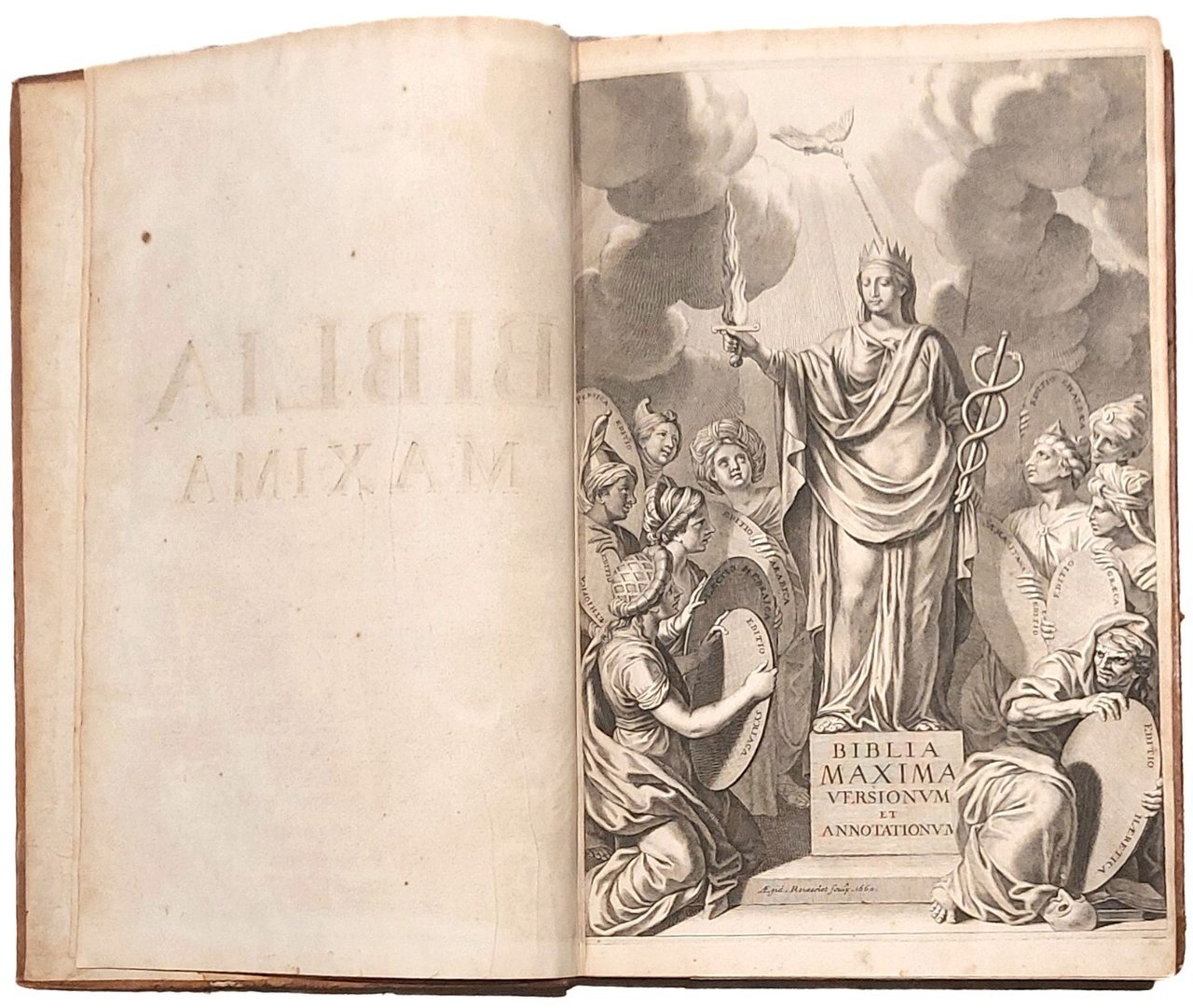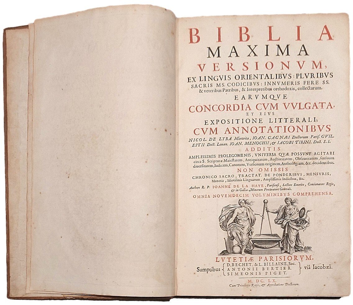 Poderosa edizione che segue la Vulgata Sistoclementina, ordinata da Sisto V e completata da Clemente VIII. Fu coordinata da Jean de La Haye (1593-1661) sommo Biblista dei frati minori e Oratore di corte, che la dedicò al Cardinale Mazzarino. In questo immane lavoro per i 19 volumi della Biblia Maxima raccolse prezioso materiale esegetico e intraprese la collazione delle antiche traduzioni e dei differenti commentari. Alla fine del terzo volume si trovano le traduzioni latine della versione persiana del Pentateuco e del Targum di Jonathan ben Uzziel sul Pentateuco.