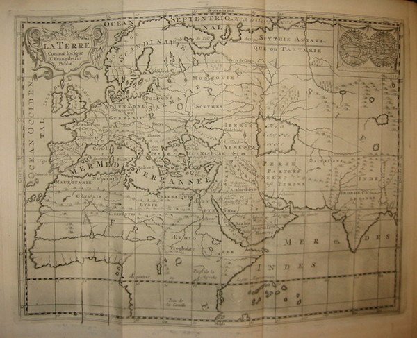 Folio (cm. 39), 2 Voll. legati in uno, 12 cc.nn., XXXI-520 pp. con un ritratto a piena pagina del Dedicatario, l’Arcivescovo di Malines; 506 pp., 44 pp. con 5 grandi tavole più volte ripiegate in fine (di cui 4 carte geografiche). Marca tipografica ai frontespizi stampati in rosso e nero. Testate calcografiche, fregi e iniziali xilografiche n.t. Legatura coeva in piena pelle con nervi, ricchi fregi e titolo impresso in oro al ds. (restauri ben eseguiti alla cuffia superiore, lievi abrasioni e tracce d’usura). Tagli rossi. Ottimo, freschissimo esemplare. Rara edizione.
