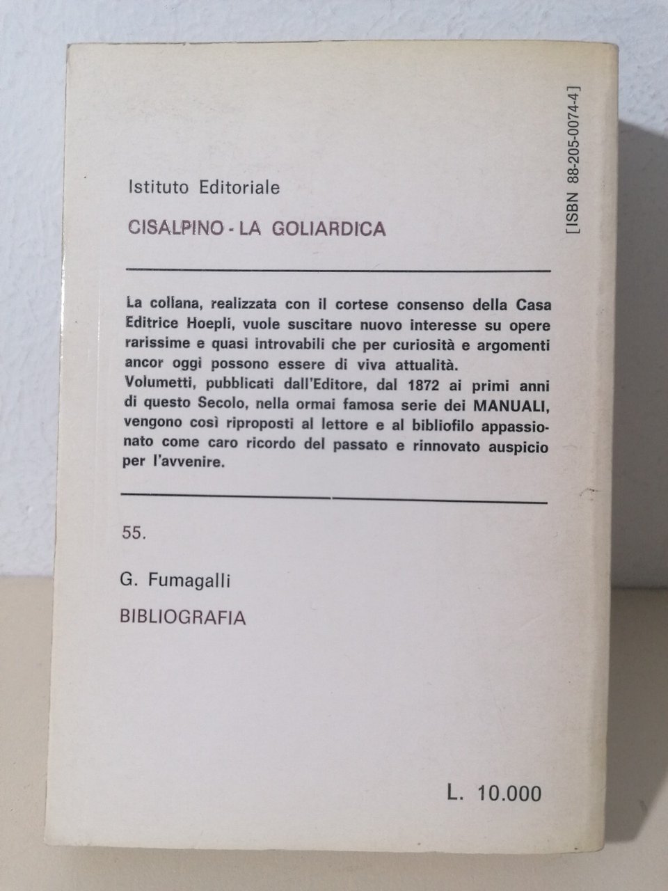 Bibliografia - Fumagalli, Libro Cisalpino Goliardica Anastatica Hoepli 1977