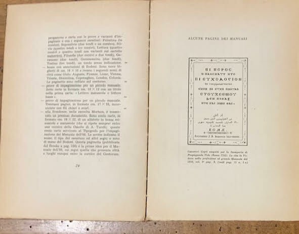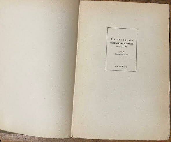 Catalogo delle autentiche edizioni bodoniane, esemplare 128º. Volume in discrete condizioni, data la copertina rovinata dal tempo e le pagine ingiallite - nonostante ciò, perfettamente leggibile. Copertina rigida di colore scuro con un'incisione in oro al centro del fronte e titolo dorato sulla costa.