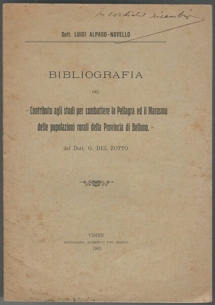 Bibliografia del «Contributo agli studi per combattere la Pellagra ed il Marasmo delle popolazioni rurali della Provincia di Belluno» del dott. G. Del Zotto.