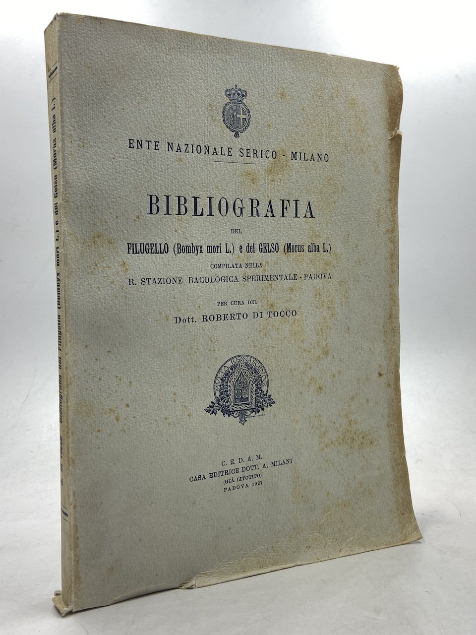 Brossura, cm18x25 pp XLII (2) 262 (2). Pubblicazione dell’Ente Nazionale Serico di Milano. Prefazione di Luciano Pigorini, Direttore della Regia Stazione Bacologica Sperimentale di Padova.
