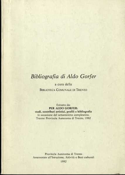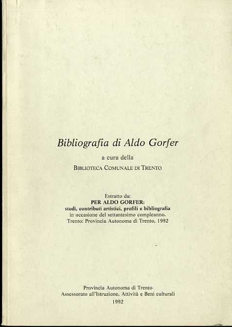 P. 73-130, 24 cm, bross. Condizioni : USATO - Stato : Buono. Altre note : Estratto originale da: "Per Aldo Gorfer: studi, contributi artistici, profili e bibliografia".