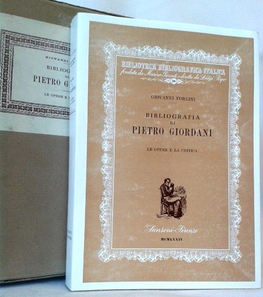 Volume in 4 piccolo, brossura editoriale con sopraccoperta, titolo al piatto inquadrato ed al dorso, bianca, doppio frontespizio, 479 pp., colophon con la giustificazione della tiratura (666 esemplari) e della numerazione (249), bianca. Esaustiva bibliografia delle opere del Giordani e della critica e saggistica su di esse. Allo stato di nuovo, ancora intonso, importanre e raro.