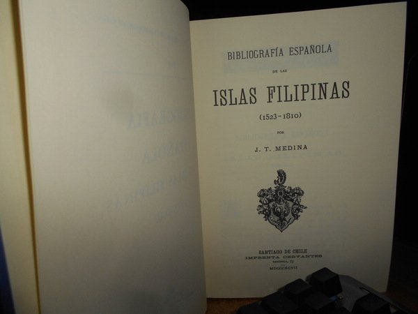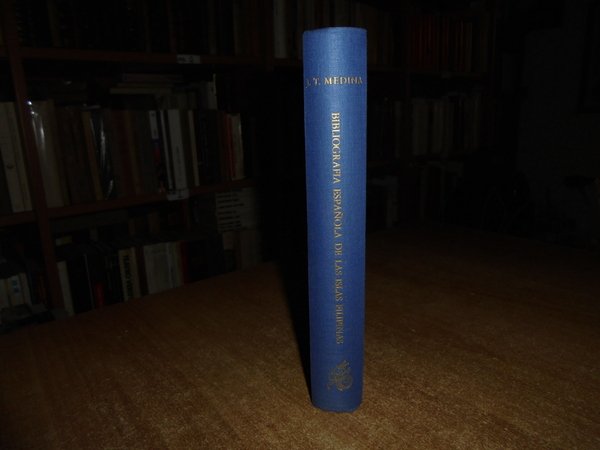 Medina José Toribio. Amsterdam, N. Israel, 1966. Bibliografía española de las Islas Filipinas 1523 - 1810. In-8°, tela bleu con titolo in oro al dorso. 556 pp. Come nuovo. Uff. B - III - 7